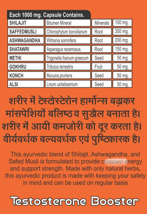 ASHAW-TESTO ayurvedic testosterone booster capsules (100x1gm) Pack